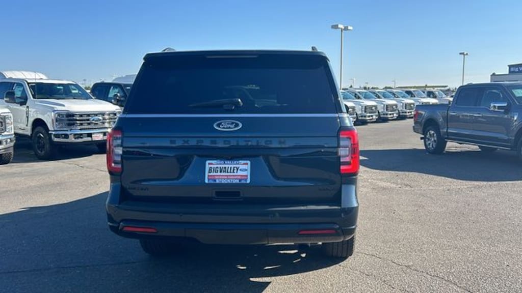 12 Speakers, 1st & 2nd Row Floor Mats w/Logo, 26mm Engine Radiator, 3.31 Axle Ratio, 3.73 Axle Ratio, 360-Degree Camera w/Split View, 360-Degree Camera w/Trailer Reverse Guidance, 3rd row seats: split-bench, 4-Wheel Disc Brakes, ABS brakes, Adjustable pedals, Air Conditioning, Alloy wheels, AM/FM radio: SiriusXM with 360L, Auto High-beam Headlights, Auto-dimming door mirrors, Auto-dimming Rear-View mirror, Automatic temperature control, Black Headlamp and Fog Lamp Bezels, Black Limited Tailgate Badge, Black Rear Bumper, Black Roof Rack Side Rails, Body Color Door Handles, Brake assist, Bumpers: body-color, Compass, Connected Built-In Navigation, ControlTrac w/3.73 Axle Ratio, Delay-off headlights, Driver door bin, Driver vanity mirror, Dual front impact airbags, Dual front side impact airbags, Ebony Black Bar and Mesh Grille, Ebony Black Power Deployable Running Boards, Ebony Black Tailgate Applique, Electronic Stability Control, Emergency communication system: SYNC 4 911 Assist, Equipment Group 303A Stealth Package, Expedition Lettering on Hood, Exterior Parking Camera Rear, Four wheel independent suspension, Front anti-roll bar, Front Bucket Seats, Front Center Armrest, Front dual zone A/C, Front fog lights, Front reading lights, Fully automatic headlights, Garage door transmitter, Hands-Free Foot-Activated Liftgate Removal (DISC), Heated & Ventilated Leather Front Captain's Chairs, Heated door mirrors, Heated front seats, Heated rear seats, Heated steering wheel, Heated/Ventilated Lthr Front Captain's Chairs (A), Heavy-Duty Trailer Tow Package, Illuminated entry, Integrated Trailer Brake Controller, Leather steering wheel, LED Taillamp w/Black Bezels, Low tire pressure warning, Memory seat, Navigation system: Connected Navigation, Occupant sensing airbag, Outside temperature display, Overhead airbag, Overhead console, Panic alarm, Passenger door bin, Passenger vanity mirror, Pedal memory, Power door mirrors, Power driver seat, Power Liftgate, Power moonroof, Power passenger seat, Power steering, Power windows, Power-Folding Sideview Mirrors w/Autofold, Pro Trailer Backup Assist, Radio data system, Radio: B&O Sound System by Bang & Olufsen, Rain sensing wipers, Rear air conditioning, Rear anti-roll bar, Rear reading lights, Rear window defroster, Rear window wiper, Reclining 3rd row seat, Remote keyless entry, Reverse Brake Assist, Second Row Power Windows Removal, Security system, SiriusXM w/360L, Speed control, Speed-sensing steering, Speed-Sensitive Wipers, Split folding rear seat, Spoiler, Sport Center Console, Sport-Tuned Suspension, Stealth Edition Package, Steering wheel memory, Steering wheel mounted audio controls, SYNC 4 w/Enhanced Voice Recognition, Tachometer, Telescoping steering wheel, Tilt steering wheel, Traction control, Trip computer, Turn signal indicator mirrors, Variably intermittent wipers, Ventilated front seats, Voltmeter, Wheels: 20" Bright Machined Aluminum, Wheels: 22" Premium Black-Painted Aluminum, STEALTH EDITION PACKAGE.