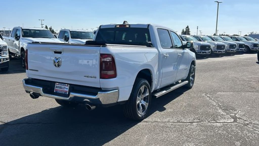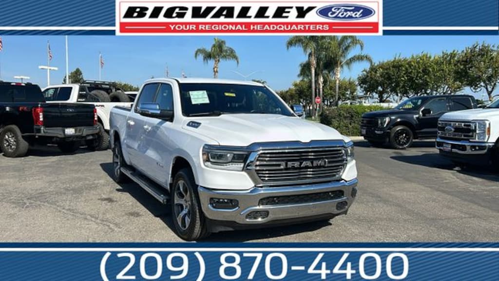 12" Touchscreen Display, 2nd Row In Floor Storage Bins, 4G LTE Wi-Fi Hot Spot, Apple CarPlay, Auto High Beam Headlamp Control, Blind Spot & Cross Path Detection, Connected Travel & Traffic Services, Connectivity - US/Canada, Disassociated Touchscreen Display, Electric Shift-On-Demand Transfer Case, Foam Bottle Insert (Door Trim Panel), For Details, Visit DriveUconnect.com, For More Info, Call 800-643-2112, Front Door Accent Lighting, Front LED Fog Lamps, Global Telematics Box Module (TBM), Google Android Auto, GPS Antenna Input, GPS Navigation, HD Radio, Integrated Center Stack Radio, Integrated Voice Command w/Bluetooth, Laramie Level 1 Equipment Group, LED Reflector Headlamps, Navigation System, ParkSense Front/Rear Park Assist w/Stop, Quick Order Package 27H Laramie, Radio: Uconnect 5 Nav w/12.0" Display, Rain Sensitive Windshield Wipers, Rear Door Accent Lighting, Rear Power Sliding Window, Rear Window Defroster, Remote Tailgate Release, SiriusXM Radio Service, SiriusXM w/360L, USB Host Flip, #1 Seat Foam Cushion, 10 Speakers, 3 Rear Seat Head Restraints, 3.21 Rear Axle Ratio, 4 Way Front Headrests, 4-Wheel Disc Brakes, 48V Belt Starter Generator, ABS brakes, Adjustable pedals, Air Conditioning, Alloy wheels, AM/FM radio: SiriusXM with 360L, Apple CarPlay/Android Auto, Audio memory, Auto-dimming door mirrors, Auto-Dimming Exterior Driver Mirror, Auto-dimming Rear-View mirror, Automatic temperature control, Brake assist, Bumpers: chrome, Chrome Exterior Mirrors, Compass, Convex Wide-Angle Exterior Mirror Insert, Delay-off headlights, Driver door bin, Driver Seat Memory, Driver vanity mirror, Dual front impact airbags, Dual front side impact airbags, Electronic Stability Control, Exterior Mirrors Courtesy Lamps, Exterior Mirrors w/Heating Element, Exterior Mirrors w/Memory, Exterior Mirrors w/Supplemental Signals, Front anti-roll bar, Front Center Armrest w/Storage, Front dual zone A/C, Front fog lights, Front License Plate Bracket, Front reading lights, Front Seat Back Map Pockets, Front wheel independent suspension, Fully automatic headlights, Garage door transmitter, Heated door mirrors, Heated Front Seats, Heated front seats, Heated Steering Wheel, Heated steering wheel, Illuminated entry, Leather steering wheel, Leather Trim 40/20/40 Bench Seat, Low tire pressure warning, Manufacturer's Statement of Origin, Memory seat, MOPAR Front & Rear Rubber Floor Mats, Occupant sensing airbag, Outside temperature display, Overhead airbag, Overhead console, Panic alarm, ParkSense Front/Rear Park Assist w/Stop (DISC), ParkView Rear Back-Up Camera, Passenger door bin, Passenger vanity mirror, Pedal memory, Power 2-Way Driver Lumbar Adjust, Power 2-Way Passenger Lumbar Adjust, Power 8-Way Driver & Passenger Seats, Power door mirrors, Power driver seat, Power passenger seat, Power steering, Power windows, Power-Folding Mirrors, Radio data system, Radio: Uconnect 5 Nav w/8.4" Display, RAM Grille Badge - Chrome, Rear 60/40 Folding Seat, Rear anti-roll bar, Rear seat center armrest, Rear step bumper, Remote keyless entry, Security system, Speed control, Split folding rear seat, Steering wheel mounted audio controls, Tachometer, Telescoping steering wheel, Tilt steering wheel, Traction control, Trip computer, Turn signal indicator mirrors, Variably intermittent wipers, Ventilated Front Seats, Ventilated front seats, Voltmeter, Wheel to Wheel Side Steps, Wheels: 18" x 8" Aluminum Base Painted, Wheels: 20" x 9" Premium Paint/Polished, 12" Touchscreen Display, 2nd Row In Floor Storage Bins, 4G LTE Wi-Fi Hot Spot, Apple CarPlay, Auto High Beam Headlamp Control, Blind Spot & Cross Path Detection, Connected Travel & Traffic Services, Connectivity - US/Canada, Disassociated Touchscreen Display, Electric Shift-On-Demand Transfer Case, Foam Bottle Insert (Door Trim Panel), For Details, Visit