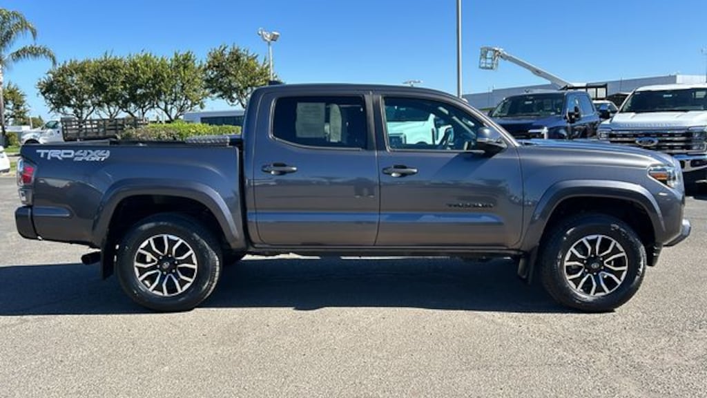 120V/400W Deck Mounted AC Power, Black Chrome Exhaust Tip (TMS), Black Tailgate Insert (TMS), Blackout Emblem Overlays (TMS), Blackout Package (TMS), Blind Spot Monitor w/Rear Cross Traffic Alert, Color-Keyed Overfenders, Engine Immobilizer, Mesh Front Grille, Power Sliding Rear Window w/Privacy Glass, Rear Parking Assist Sonar, Smart Key w/Push Button Start, Technology Package, TRD Sport Package, 6 Speakers, ABS brakes, Air Conditioning, All Weather Floor Liner & Door Sill Protector (TMS), Alloy wheels, AM/FM radio: SiriusXM, Anti-whiplash front head restraints, Apple CarPlay/Android Auto, Auto High-beam Headlights, Auto-dimming Rear-View mirror, Automatic temperature control, Axle Ratio: 3.91, Bed Lighting Kit (TMS), Brake assist, Bumpers: body-color, Driver door bin, Dual front impact airbags, Dual front side impact airbags, Electronic Stability Control, Emergency communication system: Safety Connect with 1-year trial, Exterior Parking Camera Rear, Fabric Seat Trim (FD), Front anti-roll bar, Front Bucket Seats, Front Center Armrest, Front dual zone A/C, Front fog lights, Front reading lights, Front Seats, Front wheel independent suspension, Heated door mirrors, Illuminated entry, Knee airbag, Leather Shift Knob, LED Daytime Running Lights & Fog Lights, Low tire pressure warning, Mudguards (TMS), Occupant sensing airbag, Outside temperature display, Overhead airbag, Overhead console, Panic alarm, Passenger door bin, Power door mirrors, Power driver seat, Power steering, Power windows, Preferred Owners Portfolio (TMS), Radio: AM/FM Radio, Rear step bumper, Remote keyless entry, Security system, Speed control, Speed-sensing steering, Split folding rear seat, Steering wheel mounted audio controls, Tachometer, Telescoping steering wheel, Tilt steering wheel, Traction control, Trip computer, Turn signal indicator mirrors, Variably intermittent wipers, Wheels: 17" x 7.5J Machined Alloy, 120V/400W Deck Mounted AC Power, Black Chrome Exhaust Tip (TMS), Black Tailgate Insert (TMS), Blackout Emblem Overlays (TMS), Blackout Package (TMS), Blind Spot Monitor w/Rear Cross Traffic Alert, Color-Keyed Overfenders, Engine Immobilizer, Mesh Front Grille, Power Sliding Rear Window w/Privacy Glass, Rear Parking Assist Sonar, Smart Key w/Push Button Start, Technology Package, TRD Sport Package.