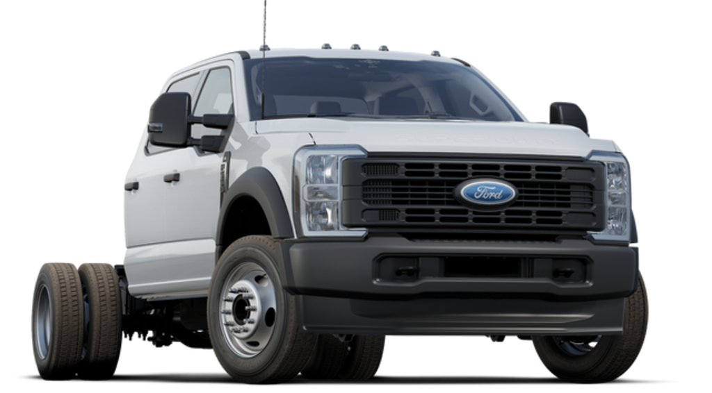 Oxford White 2024 Ford F-550SD XL DRW RWD 10-Speed Automatic 7.3L V8 PFI OHV 16V Federal 335hp 350 Amp Dual Alternators, 4-Wheel Disc Brakes, 6 Speakers, 6-Ton Hydraulic Jack, ABS brakes, Air Conditioning, AM/FM radio, AM/FM Stereo w/MP3 Player, Brake assist, Compass, Delay-off headlights, Dual 68 AH/65 AGM Battery, Dual front impact airbags, Dual front side impact airbags, Dual rear wheels, Emergency communication system: SYNC 4 911 Assist, Front anti-roll bar, Front Center Armrest w/Storage, Front License Plate Bracket, Front reading lights, Fully automatic headlights, GVWR: 18,000 lbs Payload Package, GVWR: 19,500 lb Payload Plus Upgrade Package, HD Vinyl 40/20/40 Split Bench Seat, Heated door mirrors, Illuminated entry, Order Code 660A, Outside temperature display, Overhead airbag, Overhead console, Panic alarm, Passenger vanity mirror, Platform Running Boards, Power door mirrors, Power steering, Power windows, Rear anti-roll bar, Rear reading lights, Rear View Camera & Prep Kit, Remote keyless entry, Speed control, Split folding rear seat, Steering wheel mounted audio controls, SYNC 4 Communications & Entertainment System, Tachometer, Telescoping steering wheel, Tilt steering wheel, Traction control, Trip computer, Turn signal indicator mirrors, Variably intermittent wipers, Wheels: 19.5" x 6" Argent Painted Steel.