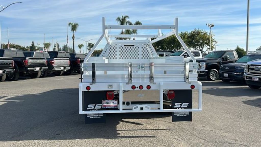 Oxford White 2025 Ford F-550SD XL CONTRACTOR BODY RWD 10-Speed Automatic Power Stroke 6.7L V8 DI 32V OHV Turbodiesel 120V/400W Outlet, 190 Amp Alternator, 350 Amp Dual Alternators, 4 Speakers, 4-Wheel Disc Brakes, 6-Ton Hydraulic Jack, ABS brakes, Air Conditioning, AM/FM radio, AM/FM Stereo w/MP3 Player, Brake assist, Compass, Delay-off headlights, Dual 68 AH/65 AGM Battery, Dual front impact airbags, Dual front side impact airbags, Dual rear wheels, Emergency communication system: SYNC 4 911 Assist, Front anti-roll bar, Front Center Armrest w/Storage, Front License Plate Bracket, Front reading lights, Fully automatic headlights, GVWR: 18,000 lbs Payload Package, GVWR: 19,500 lb Payload Plus Upgrade Package 1, HD Vinyl 40/20/40 Split Bench Seat, Heated door mirrors, High Capacity Trailer Tow Package, Illuminated entry, Order Code 660A, Outside temperature display, Overhead airbag, Overhead console, Panic alarm, Passenger cancellable airbag, Passenger vanity mirror, Platform Running Boards, Power door mirrors, Power steering, Power windows, Rear anti-roll bar, Rear View Camera & Prep Kit, Remote keyless entry, Security system, Speed control, Steering wheel mounted audio controls, SYNC 4 Communication & Entertainment System, Tachometer, Telescoping steering wheel, Tilt steering wheel, Traction control, Trailer Brake Controller, Trip computer, Turn signal indicator mirrors, Variably intermittent wipers, Wheels: 19.5" x 6" Argent Painted Steel, XL Chrome Package.