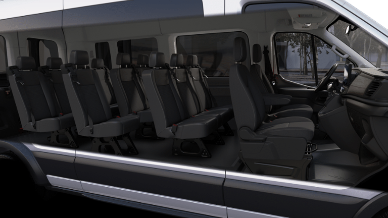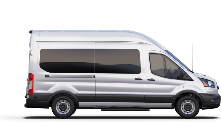 Oxford White 2025 Ford Transit-350 XL RWD 10-Speed Automatic with Overdrive EcoBoost 3.5L V6 GTDi DOHC 24V Twin Turbocharged 15-Passenger Seats, 2 Additional Keys (4 Total), 360-Degree Camera w/Split View, 3rd row seats: split-bench, 4-Wheel Disc Brakes, 4th-Row Bench Seat, 8 Speakers, ABS brakes, Air Conditioning, AM/FM radio, Auto High-beam Headlights, Auxiliary Fuse Panel, Brake assist, Cloth Front Bucket Seats, Dark Palazzo Gray Cloth Bucket Seats, Delay-off headlights, Driver door bin, Driver vanity mirror, Driver's Seat Mounted Armrest, Dual AGM Batteries (70 Amp-hr Each), Dual front impact airbags, Dual front side impact airbags, Electronic Air Temperature Control, Electronic Stability Control, Front anti-roll bar, Front Bucket Seats, Front Fog Lamps, Front License Plate Bracket, Front Overhead Shelf, Front reading lights, Front Sensing System, Front wheel independent suspension, Fully automatic headlights, Honeycomb Mesh Grille w/Chrome Surround, Illuminated entry, Internet access capable: FordPass Connect 4G, Keyless Entry Keypad, Large Center Console, Low tire pressure warning, Midship Extended Range Fuel Tank (31 Gallons), Modified Vehicle Wiring System, Occupant sensing airbag, Overhead airbag, Panic alarm, Passenger door bin, Passenger Running Board, Passenger seat mounted armrest, Passenger vanity mirror, Power door mirrors, Power steering, Power windows, Privacy Glass, Radio: AM/FM Stereo w/SYNC 4 & Nav, Rain sensing wipers, Rear air conditioning, Rear window defroster, Rear-Window Defroster, Remote keyless entry, Remote Start, Reverse Brake Assist, Reverse Sensing System, Side Sensing System, Speed control, Steering wheel mounted audio controls, Tachometer, Telescoping steering wheel, Tilt steering wheel, Tow/Haul Mode w/Trailer Wiring Provisions, Traction control, Upfitter Package, Variably intermittent wipers, Vehicle Maintenance Monitor, Wheels: 16" Steel w/Full Silver Cover.