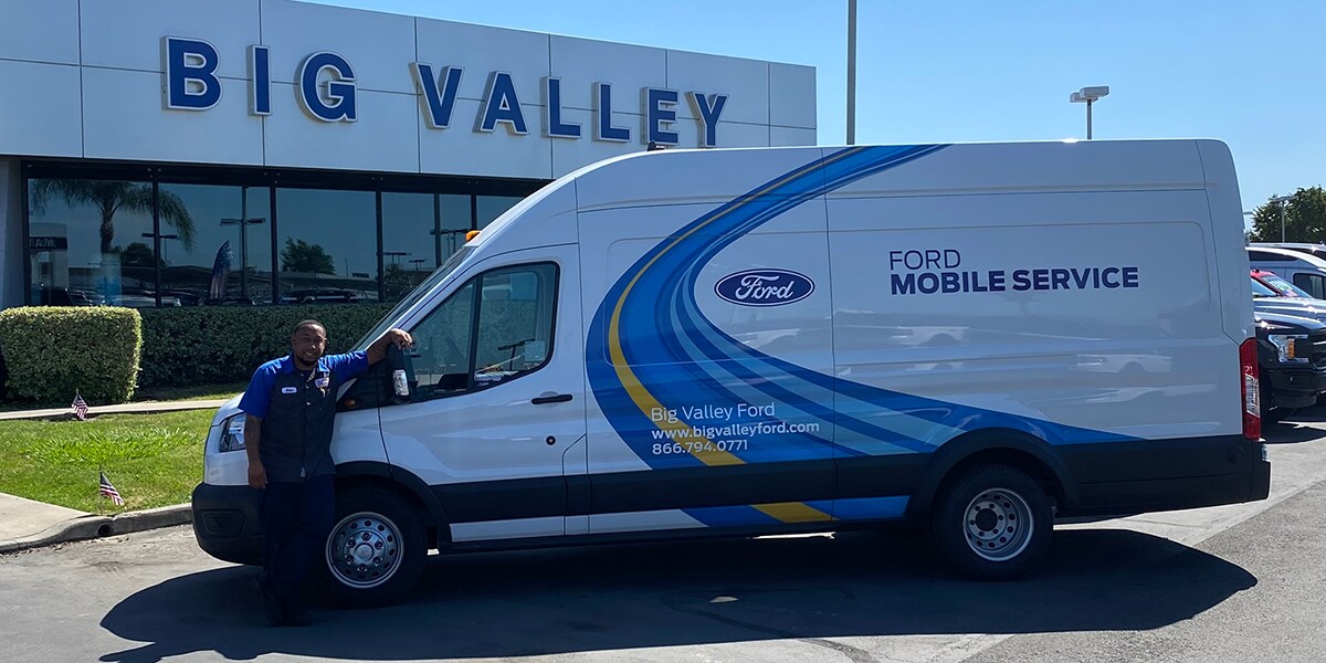 Imagine if you could get your maintenance done by a factory trained technician without ever having to leave your house. Get an oil change done right at home. Or, maybe you have a factory recall, but life just doesn't allow time to drop your vehicle off at the dealership. That's exactly what our new mobile service van was built for. Give us a call and we'll bring Big Valley Ford's legendary customer service right to your doorstep whether at-home, or at-work for no additional cost.