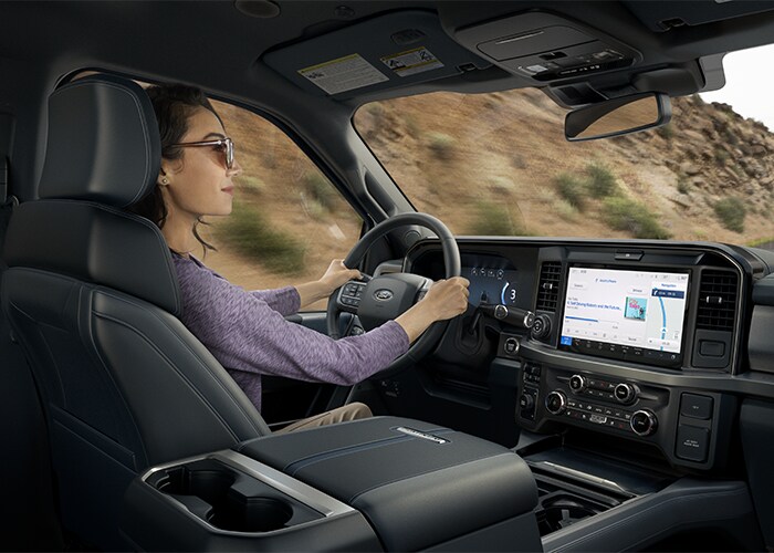 Step inside the New Ford Super Duty F-450, and you'll find a well-crafted interior that balances comfort, functionality, and technology. The spacious cab offers plenty of room for you and your crew, with available leather-trimmed seating and a variety of storage solutions. The truck's interior is designed to keep you connected and productive on the go, with features like the SYNC 4 infotainment system, a large touchscreen display, and wireless charging. When you're driving through Modesto, you'll appreciate the F-450 Super Duty's quiet and comfortable ride.