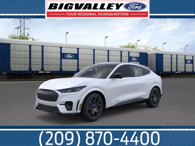 White Metallic 2025 Ford Mustang Mach-E GT AWD Single-Speed Automatic Electric Motor 10 Speakers, 4-Wheel Disc Brakes, ABS brakes, Adaptive suspension, Air Conditioning, Alloy wheels, AM/FM radio: SiriusXM with 360L, Apple CarPlay/Android Auto, Auto High-beam Headlights, Auto-dimming Rear-View mirror, Automatic temperature control, Brake assist, Bumpers: body-color, Compass, Delay-off headlights, Driver door bin, Driver vanity mirror, Dual front impact airbags, Dual front side impact airbags, Electronic Stability Control, Emergency communication system: 911 Assist, Equipment Group 400A Standard Package, Exterior Parking Camera Rear, Four wheel independent suspension, Front anti-roll bar, Front Bucket Seats, Front Center Armrest, Front dual zone A/C, Front License Plate Bracket, Front reading lights, Fully automatic headlights, Garage door transmitter, Heated door mirrors, Heated front seats, Heated Perforated ActiveX Performance Seats, Heated steering wheel, Illuminated entry, Internet access capable: FordPass Connect, Knee airbag, Low tire pressure warning, Matte Clear Hood Stripes, Memory seat, Mobile Power Cord (120V/240V), Mustang Mach-E GT Performance Upgrade, NACS Fast Charging Adapter, Navigation system: Connected Navigation, Occupant sensing airbag, Outside temperature display, Overhead airbag, Overhead console, Panic alarm, Panoramic Fixed-Glass Roof, Passenger door bin, Passenger vanity mirror, Power door mirrors, Power driver seat, Power Liftgate, Power passenger seat, Power steering, Power windows, Radio data system, Radio: B&O Sound System by Bang & Olufsen, Rain sensing wipers, Rear anti-roll bar, Rear seat center armrest, Rear side impact airbag, Rear window defroster, Rear window wiper, Remote keyless entry, Security system, SiriusXM w/360L, Speed control, Speed-sensing steering, Speed-Sensitive Wipers, Split folding rear seat, Spoiler, Steering wheel mounted audio controls, SYNC 4A w/Enhanced Voice Recognition, Telescoping steering wheel, Tilt steering wheel, Tire Inflator & Sealant Kit, Traction control, Trip computer, Turn signal indicator mirrors, Variably intermittent wipers, Wheels: 20" Machined Face Aluminum, Wheels: 20" Monochromatic High Gloss Black-Painted.