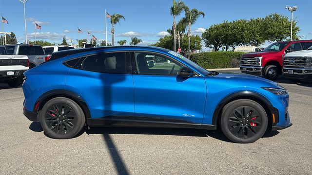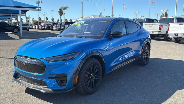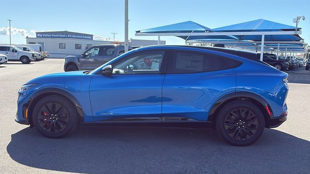 Blue Metallic 2025 Ford Mustang Mach-E Premium AWD Single-Speed Automatic Dual Electric Motor 10 Speakers, 1st & 2nd Row Floor Liners w/o Carpet Mats, 4-Wheel Disc Brakes, ABS brakes, Air Conditioning, Alloy wheels, AM/FM radio: SiriusXM with 360L, Apple CarPlay/Android Auto, Auto High-beam Headlights, Auto-dimming Rear-View mirror, Automatic temperature control, Brake assist, Brembo Branded Front Brakes, Bumpers: body-color, Cargo Area Cover, Cargo Floor Liner, Compass, Delay-off headlights, Driver door bin, Driver vanity mirror, Dual front impact airbags, Dual front side impact airbags, Electronic Stability Control, Emergency communication system: 911 Assist, Equipment Group 300A Standard Package, Exterior Parking Camera Rear, Four wheel independent suspension, Front anti-roll bar, Front Bucket Seats, Front Center Armrest, Front dual zone A/C, Front License Plate Bracket, Front reading lights, Fully automatic headlights, Garage door transmitter, Heated door mirrors, Heated front seats, Heated steering wheel, Heated/Ventilated Perforated ActiveX Bucket Seats, Illuminated entry, Interior Protection Package, Internet access capable: FordPass Connect, Knee airbag, Low tire pressure warning, Memory seat, Mobile Power Cord (120V/240V), NACS Fast Charging Adapter, Navigation system: Connected Navigation, Occupant sensing airbag, Outside temperature display, Overhead airbag, Overhead console, Panic alarm, Panoramic Fixed-Glass Roof, Passenger door bin, Passenger vanity mirror, Power door mirrors, Power driver seat, Power Liftgate, Power passenger seat, Power steering, Power windows, Radio data system, Radio: B&O Sound System by Bang & Olufsen, Rain sensing wipers, Rear anti-roll bar, Rear seat center armrest, Rear side impact airbag, Rear window defroster, Rear window wiper, Red Painted Front & Rear Brake Calipers, Remote keyless entry, Security system, SiriusXM w/360L, Speed control, Speed-sensing steering, Speed-Sensitive Wipers, Split folding rear seat, Spoiler, Sport Appearance Package, Sport Pedals, Steering wheel mounted audio controls, SYNC 4A w/Enhanced Voice Recognition, Telescoping steering wheel, Tilt steering wheel, Tire Inflator & Sealant Kit, Traction control, Trip computer, Turn signal indicator mirrors, Unique Front Fascia, Variably intermittent wipers, Ventilated front seats, Wheels: 19" Bright Machined-Face Aluminum, Wheels: 19" Monochromatic High Gloss Black-Painted.