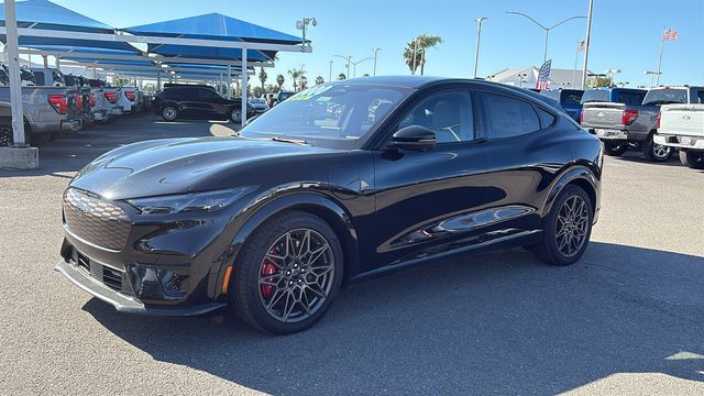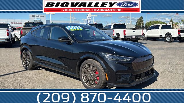 Shadow Black 2025 Ford Mustang Mach-E GT AWD Single-Speed Automatic Electric Motor 10 Speakers, 1st & 2nd Row Floor Liners w/o Carpet Mats, 4-Wheel Disc Brakes, ABS brakes, Adaptive suspension, Air Conditioning, Alloy wheels, AM/FM radio: SiriusXM with 360L, Apple CarPlay/Android Auto, Auto High-beam Headlights, Auto-dimming Rear-View mirror, Automatic temperature control, Brake assist, Bronze Appearance Package, Bronze Mesh Front Grille Shield, Bumpers: body-color, Cargo Area Cover, Cargo Floor Liner, Compass, Delay-off headlights, Driver door bin, Driver vanity mirror, Dual front impact airbags, Dual front side impact airbags, Electronic Stability Control, Emergency communication system: 911 Assist, Equipment Group 400A Standard Package, Exterior Parking Camera Rear, Four wheel independent suspension, Front anti-roll bar, Front Bucket Seats, Front Center Armrest, Front dual zone A/C, Front License Plate Bracket, Front reading lights, Fully automatic headlights, Garage door transmitter, Heated door mirrors, Heated front seats, Heated Perforated ActiveX Performance Seats, Heated steering wheel, Hood & Decklid Stripe/Door Graphics Delete, Illuminated entry, Interior Protection Package, Internet access capable: FordPass Connect, Knee airbag, Low tire pressure warning, Mach-E 4X Door Badges & Rear GT Badge, Memory seat, Mobile Power Cord (120V/240V), Mustang Mach-E GT Performance Upgrade, Navigation system: Connected Navigation, Occupant sensing airbag, Outside temperature display, Overhead airbag, Overhead console, Panic alarm, Panoramic Fixed-Glass Roof, Passenger door bin, Passenger vanity mirror, Power door mirrors, Power driver seat, Power Liftgate, Power passenger seat, Power steering, Power windows, Radio data system, Radio: B&O Sound System by Bang & Olufsen, Rain sensing wipers, Rear anti-roll bar, Rear seat center armrest, Rear side impact airbag, Rear window defroster, Rear window wiper, Remote keyless entry, Security system, SiriusXM w/360L, Speed control, Speed-sensing steering, Speed-Sensitive Wipers, Split folding rear seat, Spoiler, Steering wheel mounted audio controls, SYNC 4A w/Enhanced Voice Recognition, Telescoping steering wheel, Tilt steering wheel, Tire Inflator & Sealant Kit, Traction control, Trip computer, Turn signal indicator mirrors, Variably intermittent wipers, Wheels: 20" Monochromatic High Gloss Black-Painted, Wheels: 20" Sinister Bronze Painted.