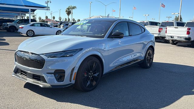 Gray Metallic 2025 Ford Mustang Mach-E GT AWD Single-Speed Automatic Electric Motor 10 Speakers, 1st & 2nd Row Floor Liners w/o Carpet Mats, 4-Wheel Disc Brakes, ABS brakes, Adaptive suspension, Air Conditioning, Alloy wheels, AM/FM radio: SiriusXM with 360L, Apple CarPlay/Android Auto, Auto High-beam Headlights, Auto-dimming Rear-View mirror, Automatic temperature control, Brake assist, Bumpers: body-color, Cargo Area Cover, Cargo Floor Liner, Compass, Delay-off headlights, Driver door bin, Driver vanity mirror, Dual front impact airbags, Dual front side impact airbags, Electronic Stability Control, Emergency communication system: 911 Assist, Equipment Group 400A Standard Package, Exterior Parking Camera Rear, Four wheel independent suspension, Front anti-roll bar, Front Bucket Seats, Front Center Armrest, Front dual zone A/C, Front License Plate Bracket, Front reading lights, Fully automatic headlights, Garage door transmitter, Heated door mirrors, Heated front seats, Heated Perforated ActiveX Performance Seats, Heated steering wheel, Hood & Decklid Stripe/Door Graphics Delete, Illuminated entry, Interior Protection Package, Internet access capable: FordPass Connect, Knee airbag, Low tire pressure warning, Memory seat, Mobile Power Cord (120V/240V), Mustang Mach-E GT Performance Upgrade, Navigation system: Connected Navigation, Occupant sensing airbag, Outside temperature display, Overhead airbag, Overhead console, Panic alarm, Panoramic Fixed-Glass Roof, Passenger door bin, Passenger vanity mirror, Power door mirrors, Power driver seat, Power Liftgate, Power passenger seat, Power steering, Power windows, Radio data system, Radio: B&O Sound System by Bang & Olufsen, Rain sensing wipers, Rear anti-roll bar, Rear seat center armrest, Rear side impact airbag, Rear window defroster, Rear window wiper, Remote keyless entry, Security system, SiriusXM w/360L, Speed control, Speed-sensing steering, Speed-Sensitive Wipers, Split folding rear seat, Spoiler, Steering wheel mounted audio controls, SYNC 4A w/Enhanced Voice Recognition, Telescoping steering wheel, Tilt steering wheel, Traction control, Trip computer, Turn signal indicator mirrors, Variably intermittent wipers, Wheels: 20" Monochromatic High Gloss Black-Painted.