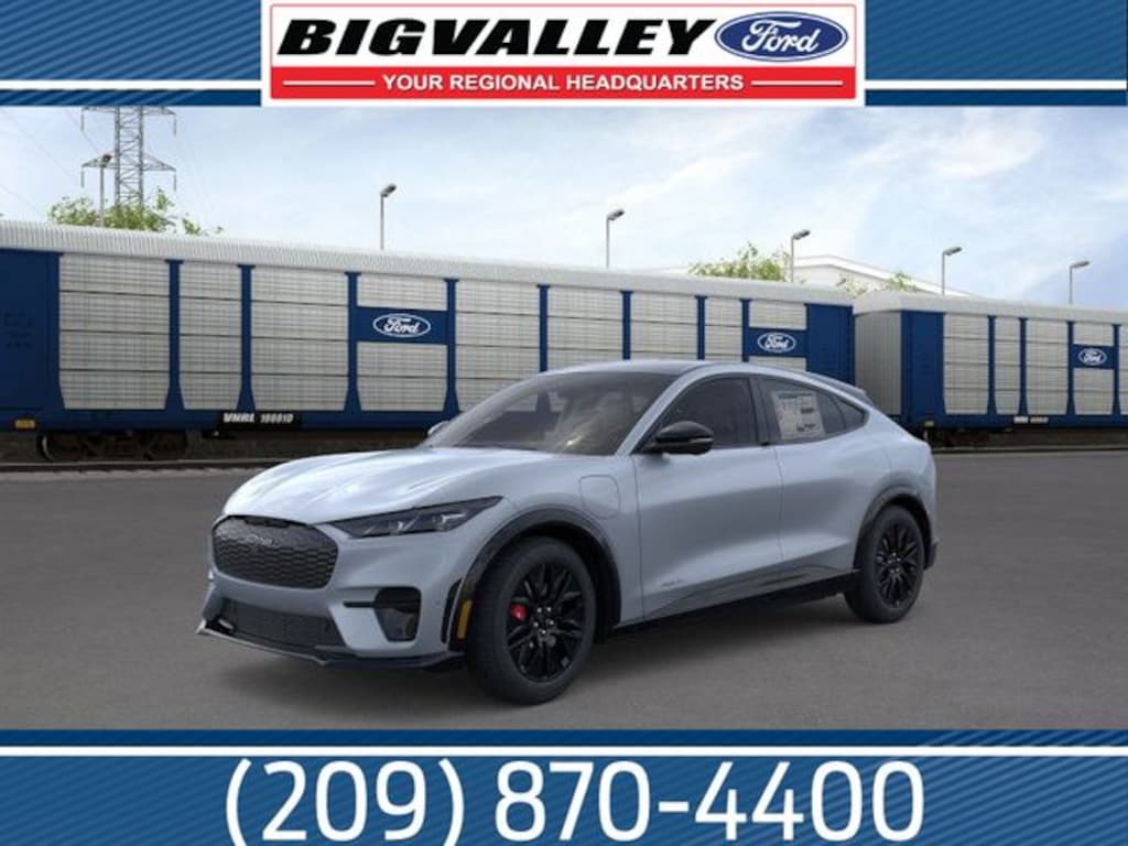 Gray 2025 Ford Mustang Mach-E Premium RWD Single-Speed Automatic Electric Motor 10 Speakers, 4-Wheel Disc Brakes, ABS brakes, Air Conditioning, Alloy wheels, AM/FM radio: SiriusXM with 360L, Apple CarPlay/Android Auto, Auto High-beam Headlights, Auto-dimming Rear-View mirror, Automatic temperature control, Brake assist, Brembo Branded Front Brakes, Bumpers: body-color, Compass, Delay-off headlights, Driver door bin, Driver vanity mirror, Dual front impact airbags, Dual front side impact airbags, Electronic Stability Control, Emergency communication system: 911 Assist, Equipment Group 300A Standard Package, Exterior Parking Camera Rear, Four wheel independent suspension, Front anti-roll bar, Front Bucket Seats, Front Center Armrest, Front dual zone A/C, Front License Plate Bracket, Front reading lights, Fully automatic headlights, Garage door transmitter, Heated door mirrors, Heated front seats, Heated steering wheel, Heated/Ventilated Perforated ActiveX Bucket Seats, Illuminated entry, Knee airbag, Low tire pressure warning, Memory seat, Mobile Power Cord (120V/240V), NACS Fast Charging Adapter, Navigation system: Connected Navigation, Occupant sensing airbag, Outside temperature display, Overhead airbag, Overhead console, Panic alarm, Panoramic Fixed-Glass Roof, Passenger door bin, Passenger vanity mirror, Power door mirrors, Power driver seat, Power Liftgate, Power passenger seat, Power steering, Power windows, Radio data system, Radio: B&O Sound System by Bang & Olufsen, Rain sensing wipers, Rear anti-roll bar, Rear seat center armrest, Rear side impact airbag, Rear window defroster, Rear window wiper, Red Painted Front & Rear Brake Calipers, Remote keyless entry, Security system, SiriusXM w/360L, Speed control, Speed-sensing steering, Speed-Sensitive Wipers, Split folding rear seat, Spoiler, Sport Appearance Package, Sport Pedals, Steering wheel mounted audio controls, SYNC 4A w/Enhanced Voice Recognition, Telescoping steering wheel, Tilt steering wheel, Tire Inflator & Sealant Kit, Traction control, Trip computer, Turn signal indicator mirrors, Unique Front Fascia, Variably intermittent wipers, Ventilated front seats, Wheels: 19" Bright Machined-Face Aluminum, Wheels: 19" Monochromatic High Gloss Black-Painted.