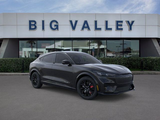 Shadow Black 2025 Ford Mustang Mach-E Premium AWD Single-Speed Automatic Dual Electric Motor 10 Speakers, 1st & 2nd Row Floor Liners w/o Carpet Mats, 4-Wheel Disc Brakes, ABS brakes, Air Conditioning, Alloy wheels, AM/FM radio: SiriusXM with 360L, Apple CarPlay/Android Auto, Auto High-beam Headlights, Auto-dimming Rear-View mirror, Automatic temperature control, Brake assist, Brembo Branded Front Brakes, Bumpers: body-color, Cargo Area Cover, Cargo Floor Liner, Compass, Delay-off headlights, Driver door bin, Driver vanity mirror, Dual front impact airbags, Dual front side impact airbags, Electronic Stability Control, Emergency communication system: 911 Assist, Equipment Group 300A Standard Package, Exterior Parking Camera Rear, Four wheel independent suspension, Front anti-roll bar, Front Bucket Seats, Front Center Armrest, Front dual zone A/C, Front License Plate Bracket, Front reading lights, Fully automatic headlights, Garage door transmitter, Heated door mirrors, Heated front seats, Heated steering wheel, Heated/Ventilated Perforated ActiveX Bucket Seats, Illuminated entry, Interior Protection Package, Internet access capable: FordPass Connect, Knee airbag, Low tire pressure warning, Memory seat, Mobile Power Cord (120V/240V), NACS Fast Charging Adapter, Navigation system: Connected Navigation, Occupant sensing airbag, Outside temperature display, Overhead airbag, Overhead console, Panic alarm, Panoramic Fixed-Glass Roof, Passenger door bin, Passenger vanity mirror, Power door mirrors, Power driver seat, Power Liftgate, Power passenger seat, Power steering, Power windows, Radio data system, Radio: B&O Sound System by Bang & Olufsen, Rain sensing wipers, Rear anti-roll bar, Rear seat center armrest, Rear side impact airbag, Rear window defroster, Rear window wiper, Red Painted Front & Rear Brake Calipers, Remote keyless entry, Security system, SiriusXM w/360L, Speed control, Speed-sensing steering, Speed-Sensitive Wipers, Split folding rear seat, Spoiler, Sport Appearance Package, Sport Pedals, Steering wheel mounted audio controls, SYNC 4A w/Enhanced Voice Recognition, Telescoping steering wheel, Tilt steering wheel, Tire Inflator & Sealant Kit, Traction control, Trip computer, Turn signal indicator mirrors, Unique Front Fascia, Variably intermittent wipers, Ventilated front seats, Wheels: 19" Bright Machined-Face Aluminum, Wheels: 19" Monochromatic High Gloss Black-Painted.